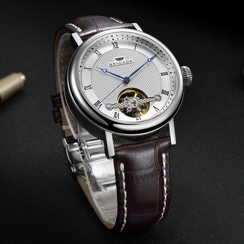 热卖镂空自动机械机芯镶钻时尚女表真皮防水精钢手表定制