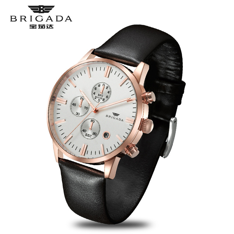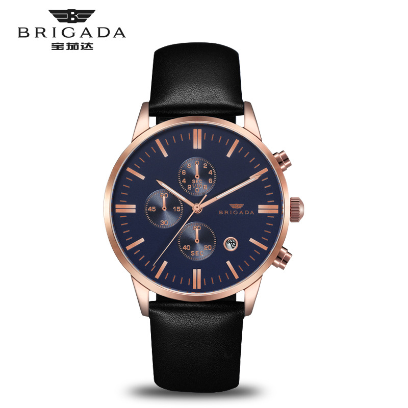 时尚潮人 男士时尚夜光腕表 日历防水 三眼男士石英手表