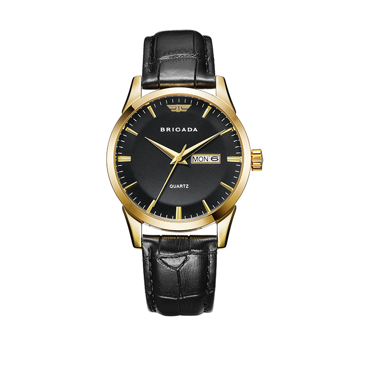 男士手表有皮革表带日历 经典休闲石英腕表 OEM贴牌